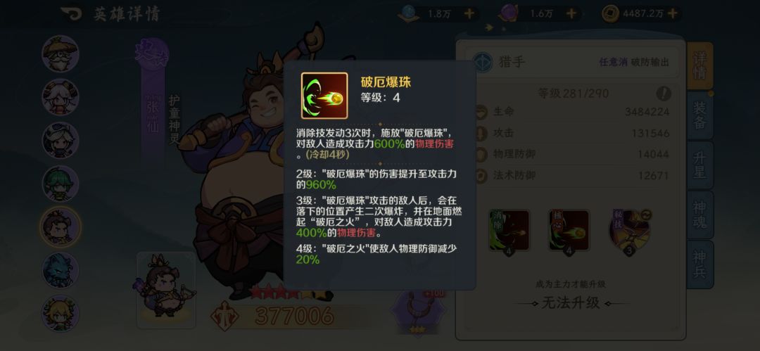 物理队的小伙伴可以携带:张仙 草妖来上减防buff