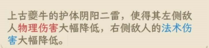 虽然这个夔牛有着一侧法术伤害降低 一侧物理伤害降低的机制在,但相信大部分小伙伴还没开始练物理队 而且现在主流一队大部分都是鱼农犼与黑无常,所以在二队我们可以携带为一队提供法术伤害收益的人物:忽雷⚡️