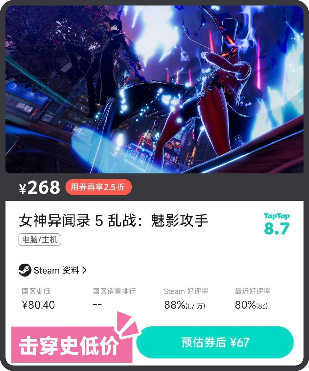 本周限时折扣上新!云族裔、女神异闻录5 乱战:魅影攻手等超史低