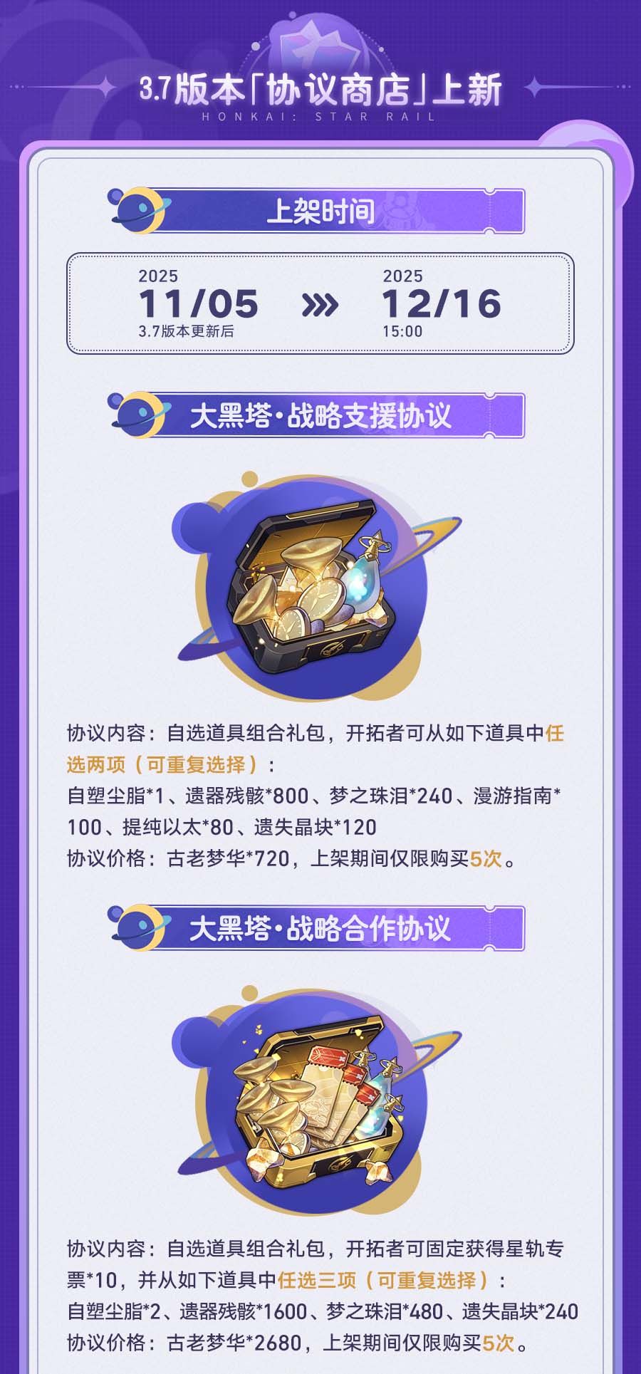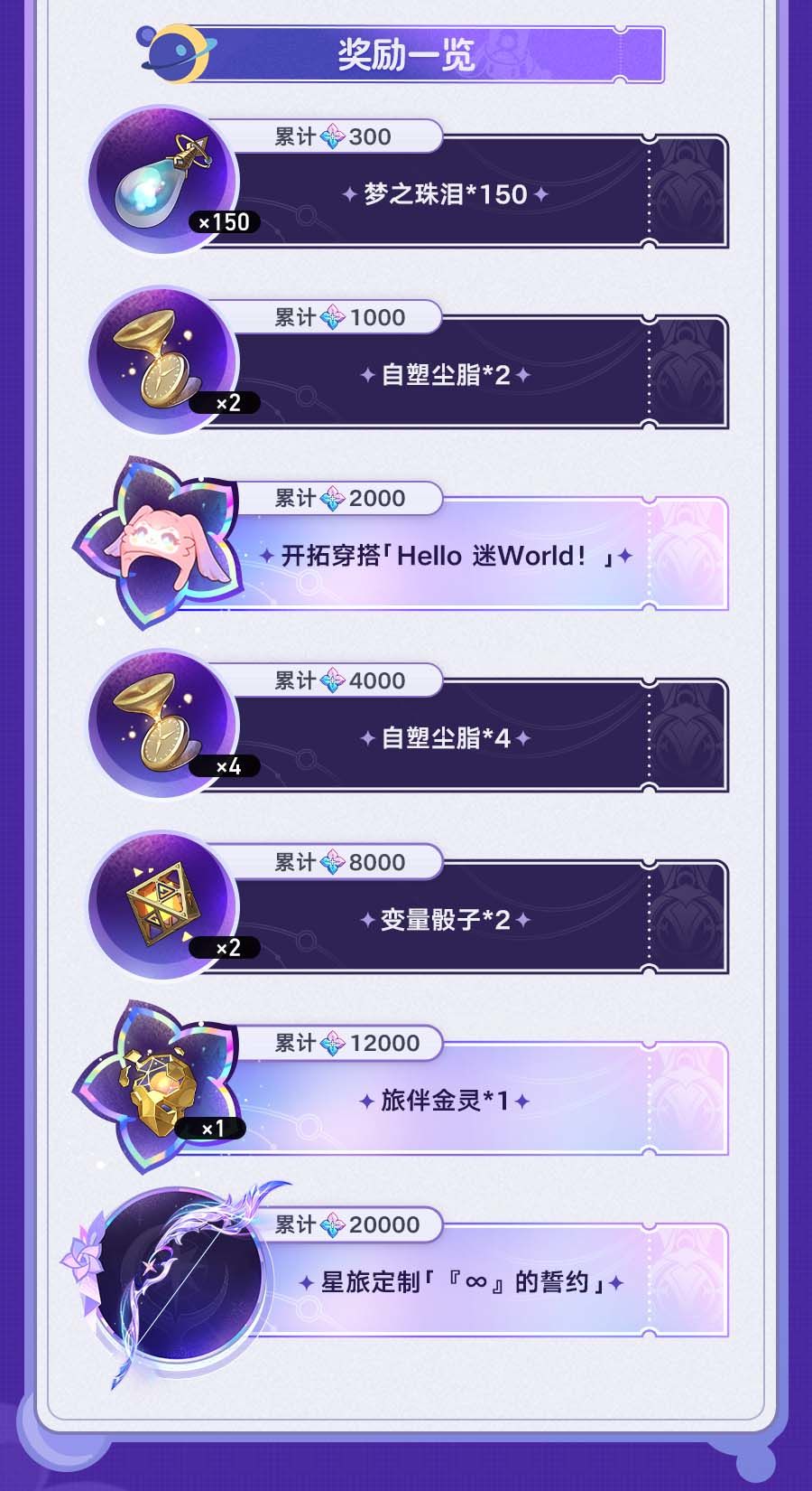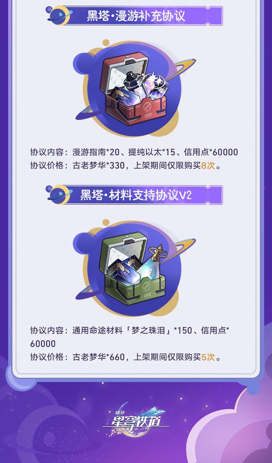 3.7版本中,累计获得古老梦华可解锁昔涟星旅定制「『∞』的誓约」等奖励!此外,6元与30元超值礼包也将会限时上架!