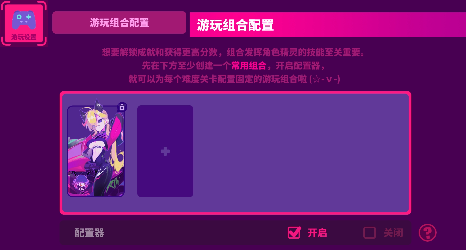 A2:第一次开启该功能时,先点击【+】图标,在弹出的配置页面,请至少创建一个游玩组合