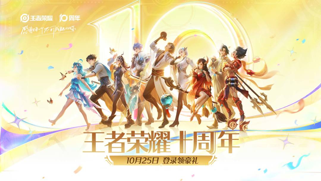 峡谷并肩,相伴十年。《王者荣耀》十周年即将到来,10月25日登录游戏就送超多周年福利!
