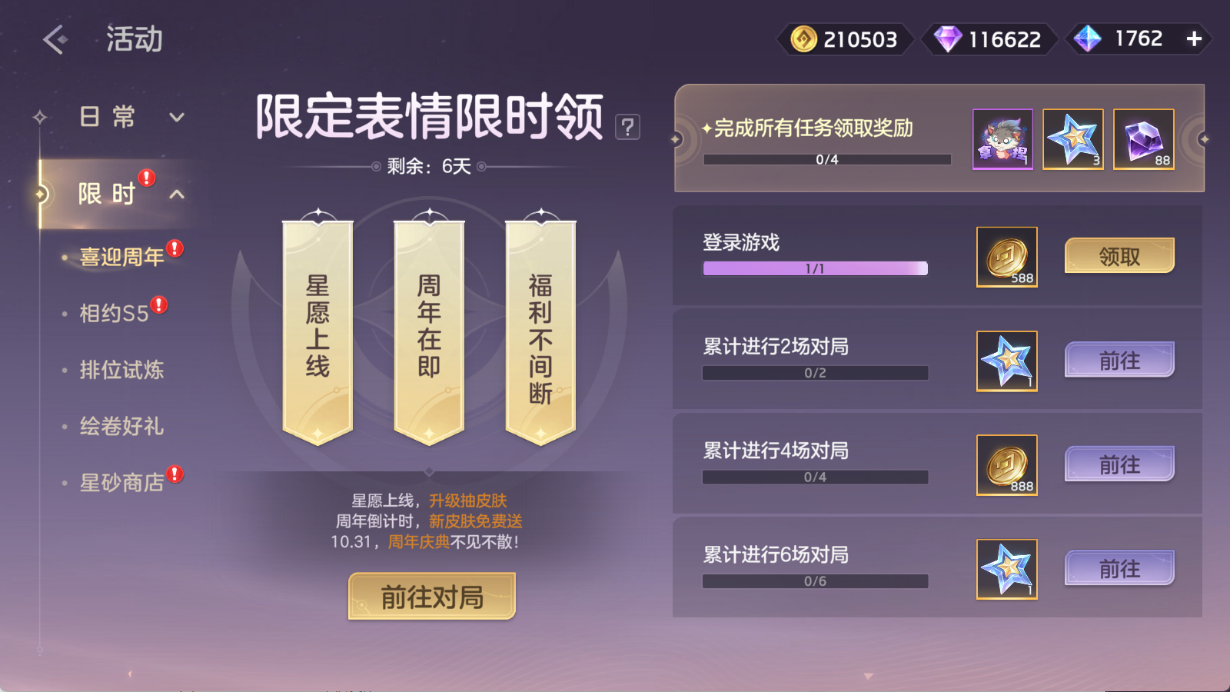 周年倒计时,好礼不停歇,完成任务即领限定表情。