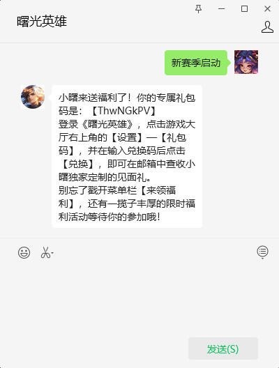 私信《曙光英雄》新赛季暗号【新赛季启动】5个字,领取专属兑换码。数量有限,先到先得~