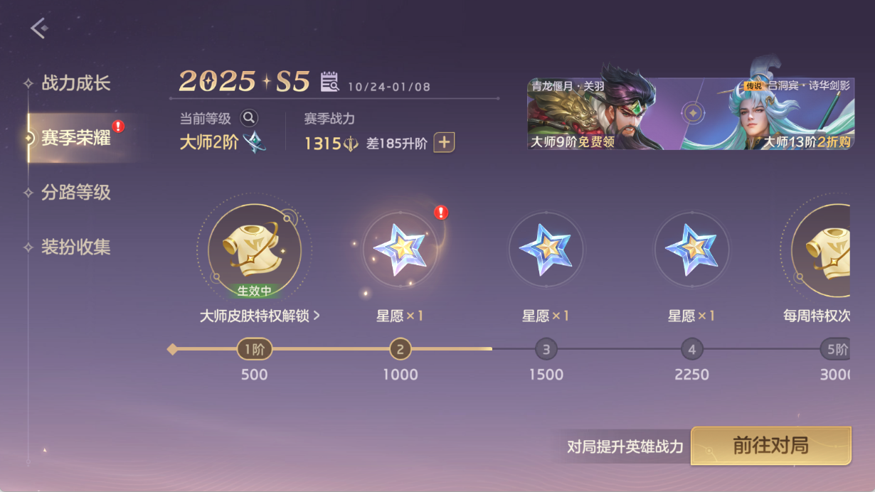 入口:游戏大厅-任务-大师生涯-赛季荣耀