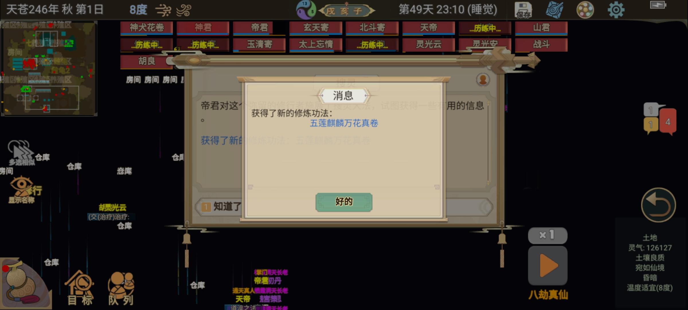 【栖霞洞天】的敌人来之前,提前保存,然后刷门派功法。之后打死、搜魂、摸尸。