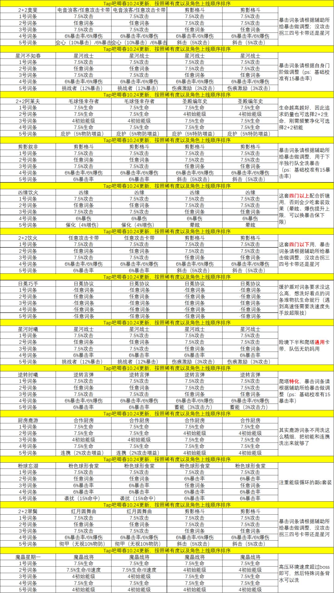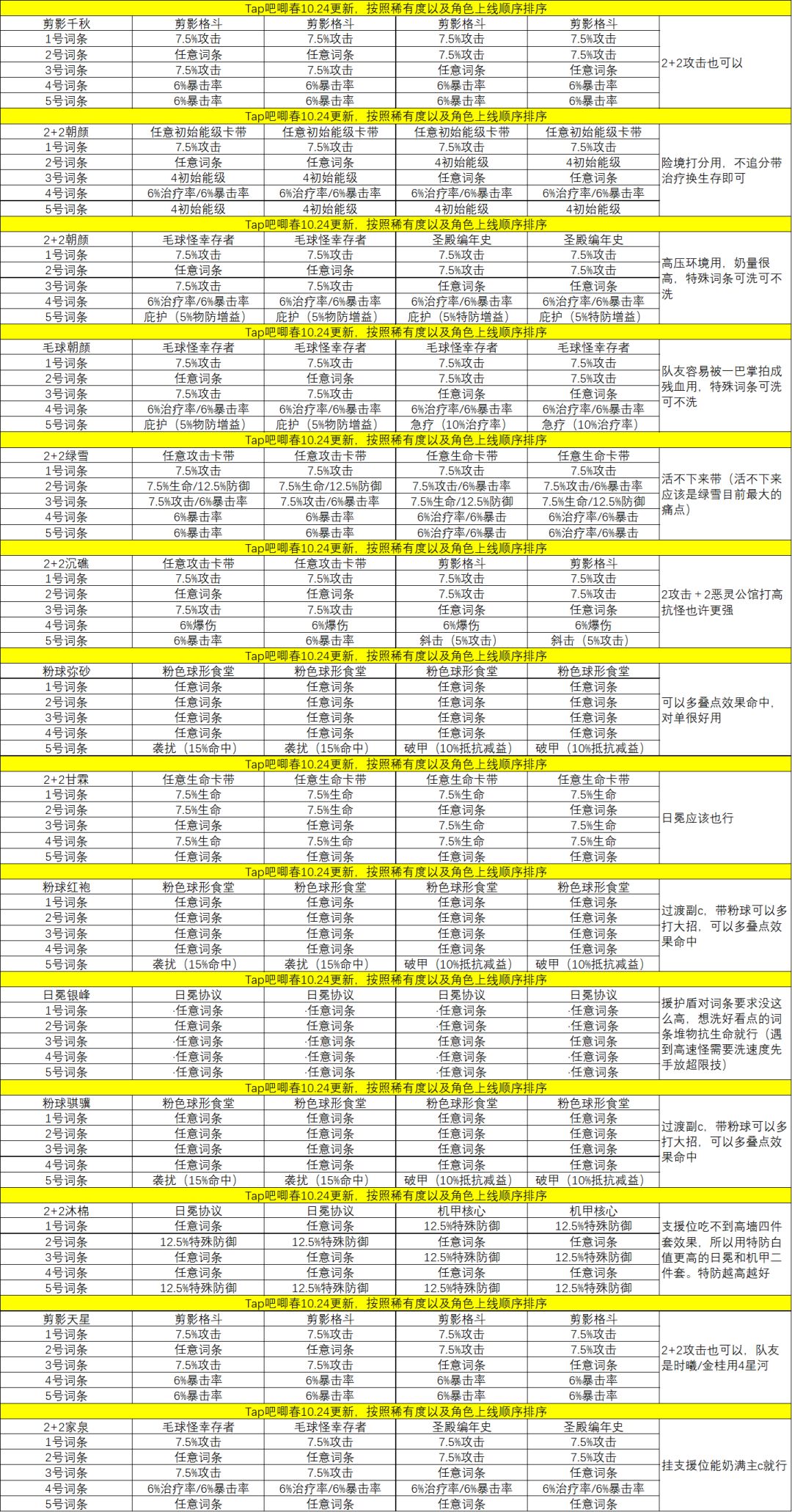 - 角色养成优先级:上半单体>下半群体>副c>辅助≈盾,大部分情况下辅助更重要的是技能等级,而主c则是等级、卡带都要练。