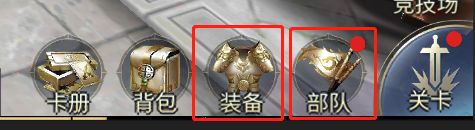 2、点击主界面左下角【部队】→【装备栏】进入宝石镶嵌界面,主公可在此界面查看宝石加成详情,装备穿戴宝石详情等