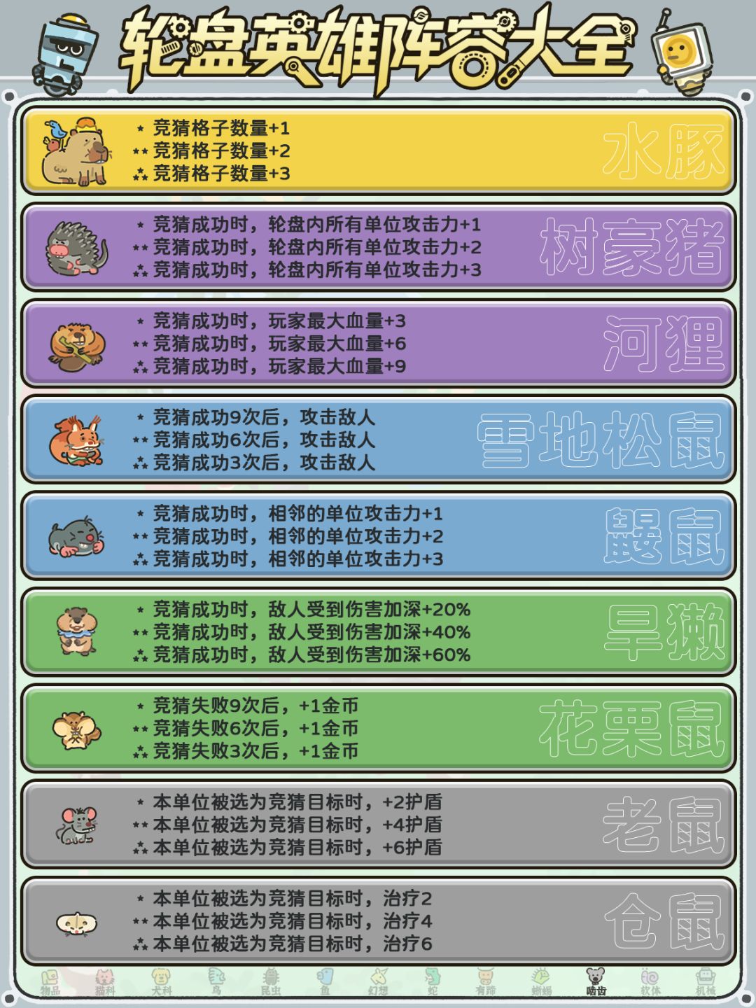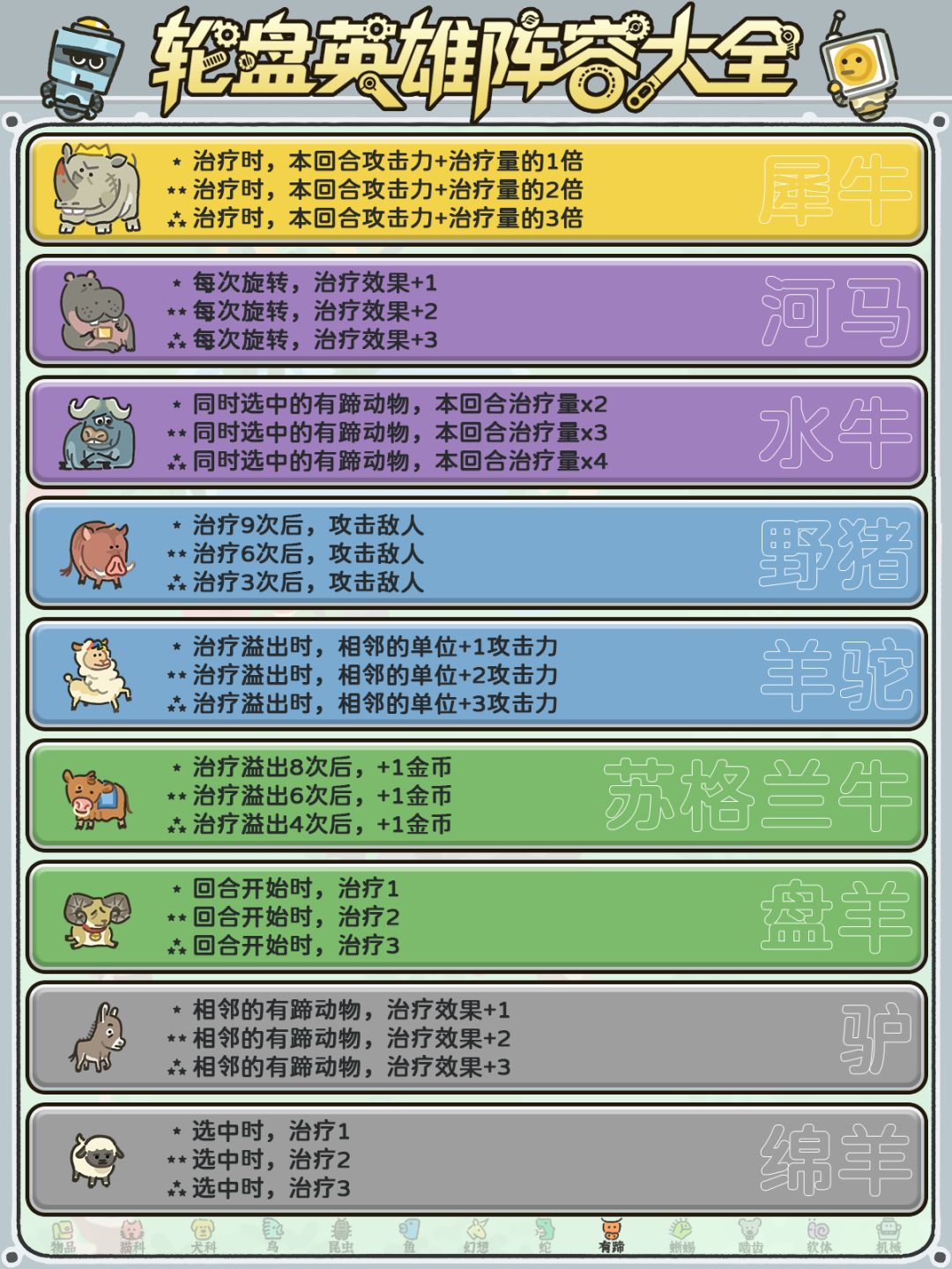 肉鸽策略游戏《轮盘英雄》全动物汇总,以动物种类区分~