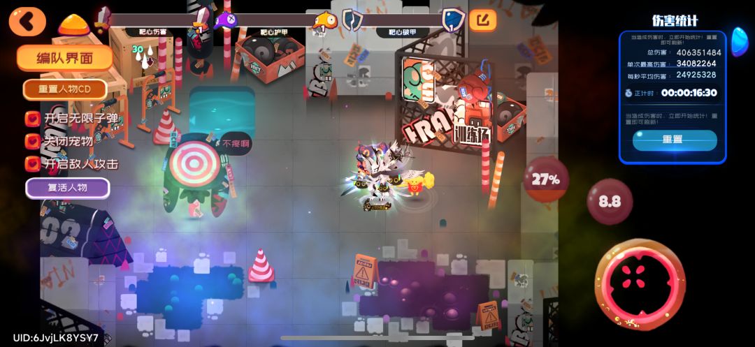 均选用晴天inf技能做测试,晴天技能攻速固定,选取一套技能打完的峰值数据