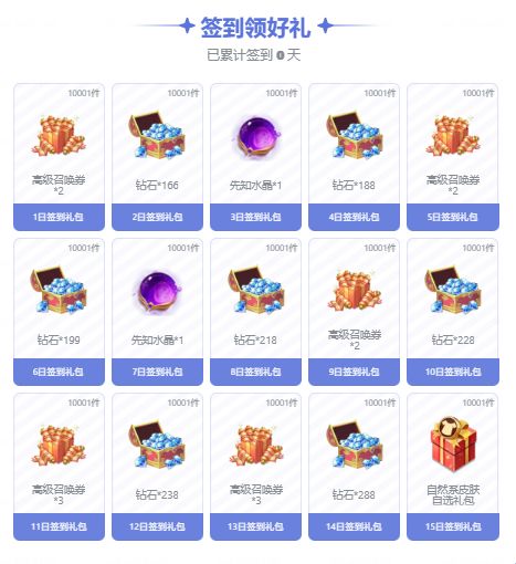 连续签到即可领取海量钻石、高抽和先知水晶,还有皮肤自选礼包福利!