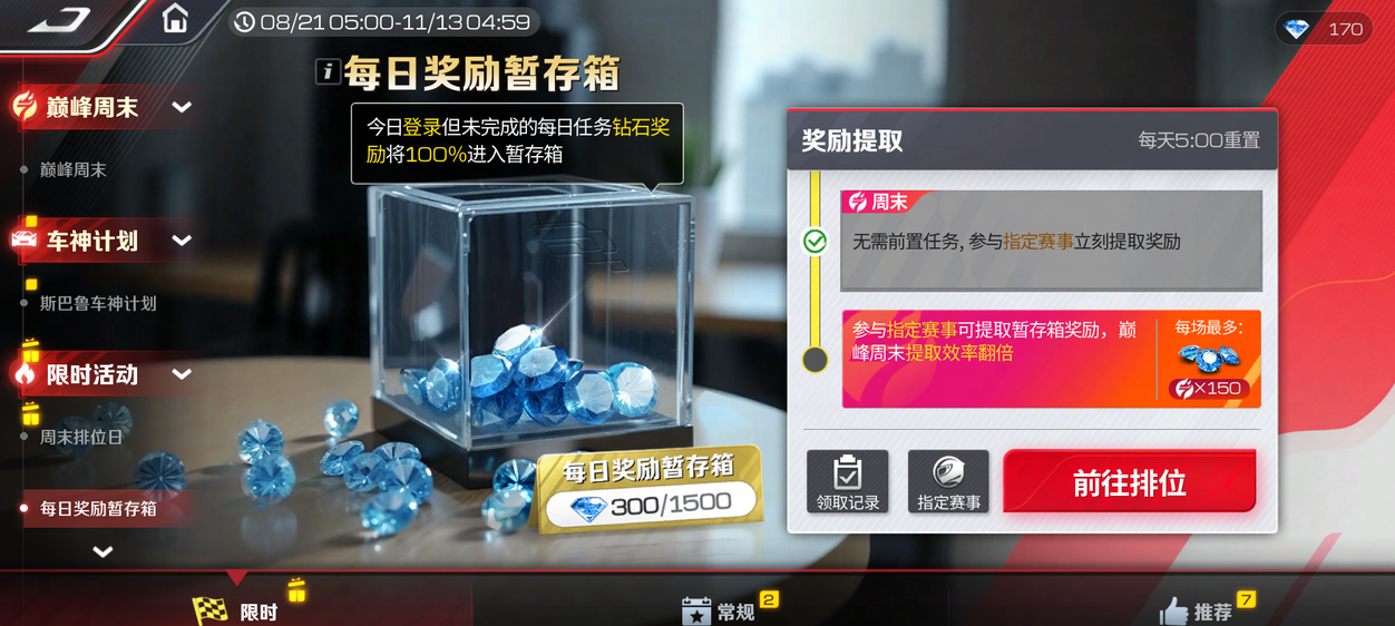 登录就送免费抽,排位一把薅走传奇车钥,首场比赛狂刷300激励分,暂存箱钻石还能翻倍提取……啊?这真的不是在做梦吗?
