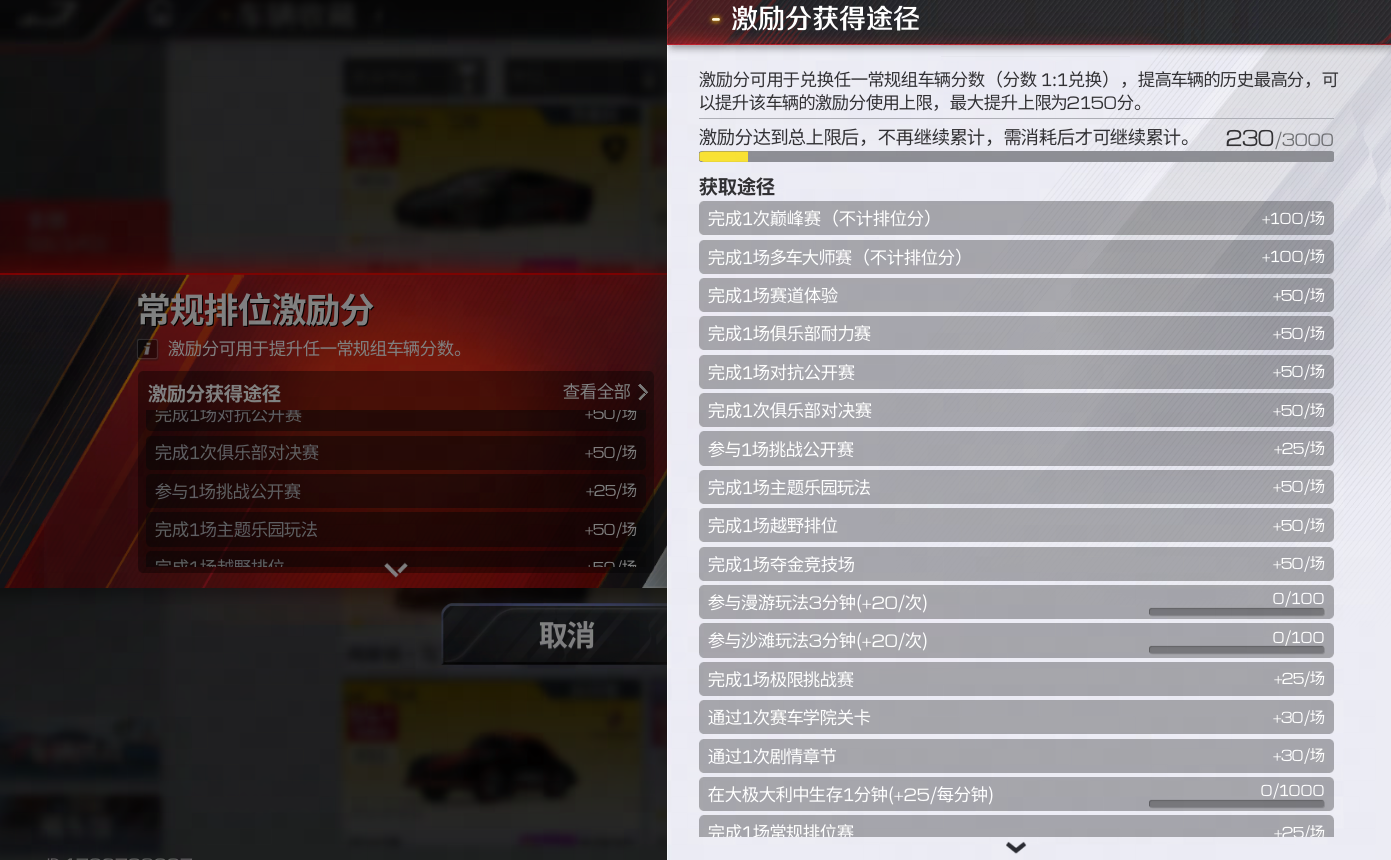 排位激励分可用于提高任意常规组车辆分数,帮你的爱车跳过那些已经熟练到闭眼都能跑的低分段,省去反复刷分的烦恼!