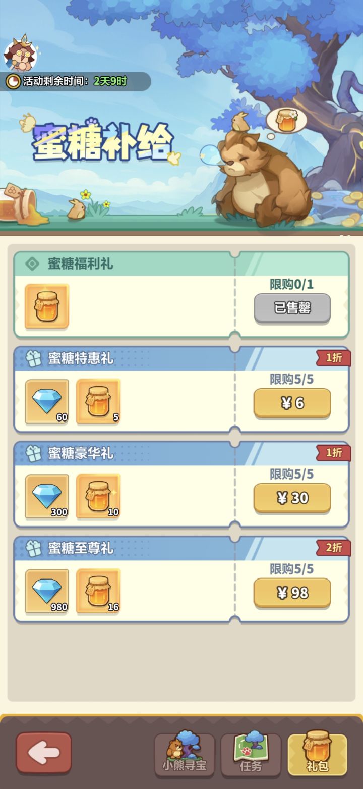 6元礼包后俩天买,第二天任务做完免费的罐子给熊撞,假如直接撞心上了呢[哇R]