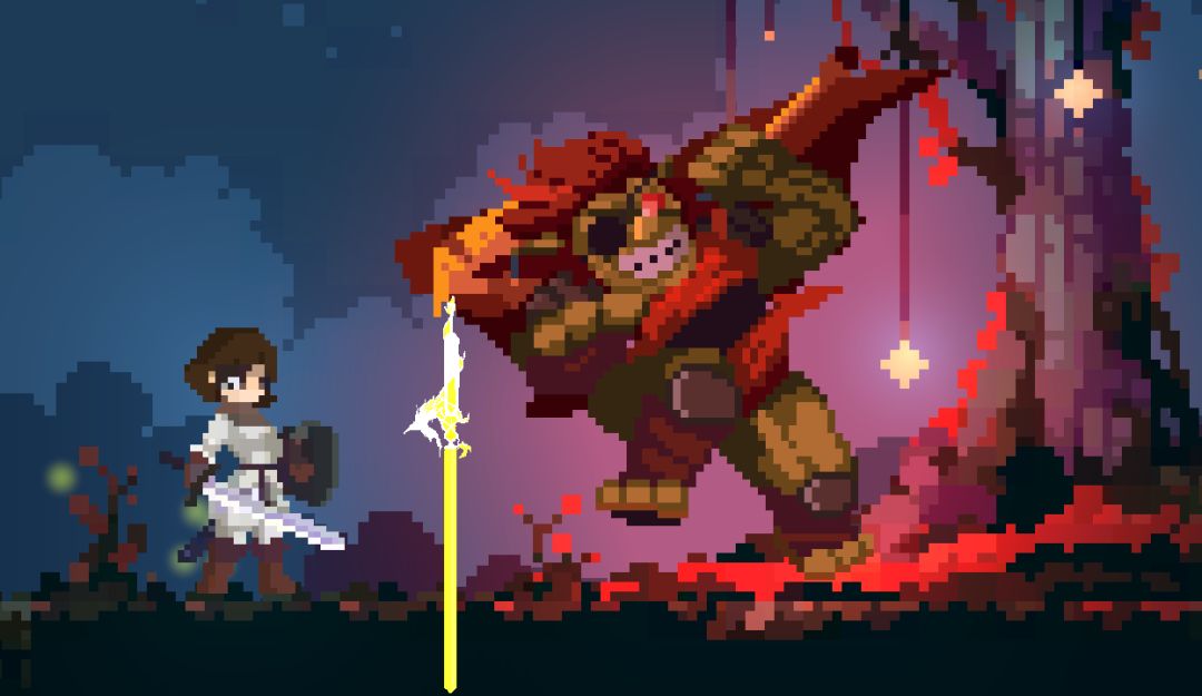 整体环境是夜色,有荧光树给夜色增加光芒,有流星雨增加环境的动感。环境中代码的“雨”和流星雨形成呼应。环境光基本是暖光,山顶是一个比较温馨的地方,而哥布林头目身上散发的是令人不安的红色光芒,给这个地方添加了一丝不安的气氛。#聚光灯gamejam开发者日志 #聚光灯gamejam开发者日志 #发现好游戏 #TapTap聚光灯独立游戏 #聚光灯gamejam #聚光灯gamejam全民试玩 #聚光灯游戏创作挑战