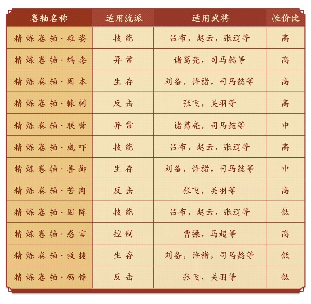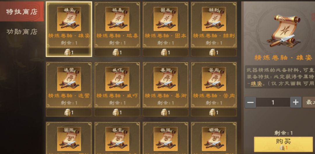 以下是各个特技卷轴的购买推荐: