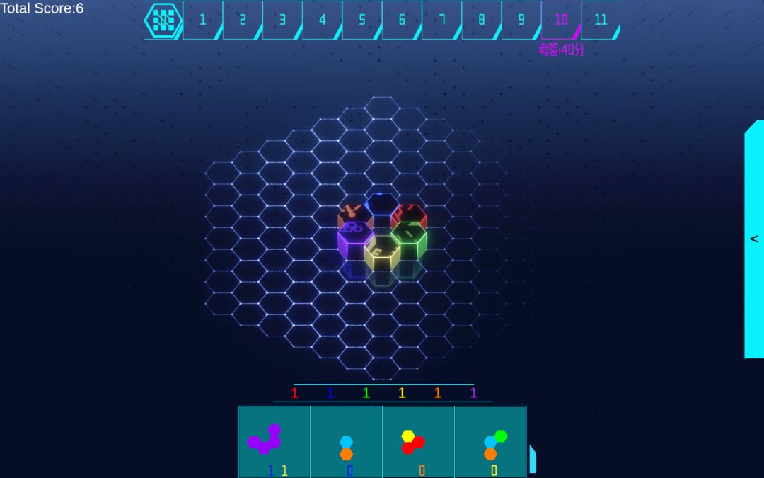 把同样颜色的地块尽可能的堆在一起相邻的地块中,同样颜色的地块分数越多,玩家的得分就会以等差数列增加