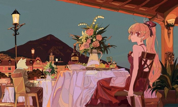 焦茶老师的画配色常常鲜明、高饱和、对比强烈,具有很强的辨识度,同时统一的纯黑边线也给色块增加了比较强的对比。不仅如此,同样是平面的阴影,焦茶老师常常会将渐变的阴影处理为特殊的光线分割产生的多个阴影块。