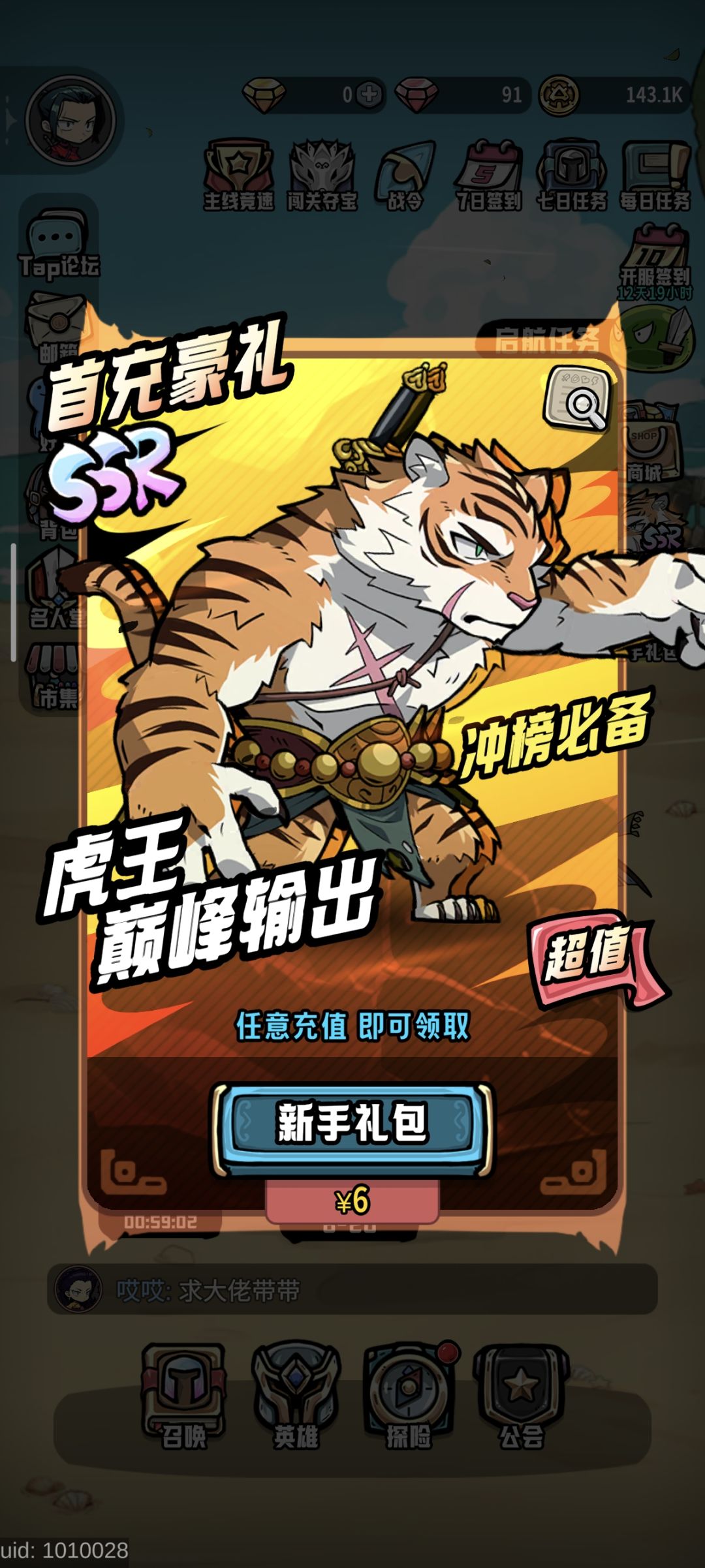 23号下载的游戏在神话8区第一个号ssr出的虎王看了论坛攻略说不太好过前期,果断换到神话1开到了贝昆然后群里领了班杨开始肝道场,肝主线,一天把全部东西打完了主线卡在7-20,没想到今天凌晨一刷新奖励领完直接推到8.20,然后玩了下技巧挑战赛发现连胜有碎片拿,运气好直接六连胜给班杨拉到7星,再跑去红钻买金书57发单抽出了菲亚,真的是体验感拉满了,虽然8-20还是过不去,但我觉得这游戏真心不错,零氪开心玩