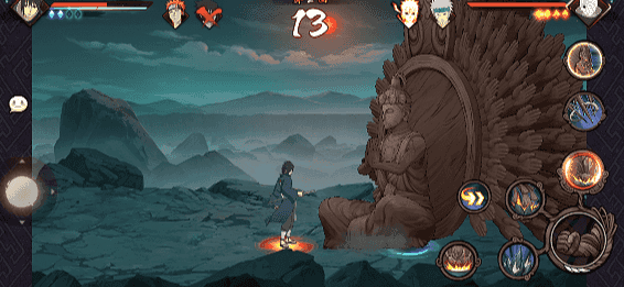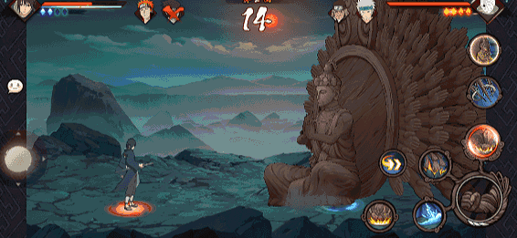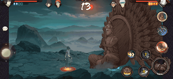 大佛始终面朝前方,释放子技能即可转向,转向带合掌打击动作,可用来打击想从下方绕至大佛身后的敌人。