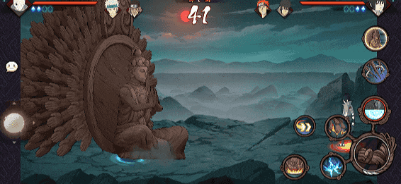 圈圈脸大和的一技能以雷遁→水遁→火遁→土遁→风遁的顺序依次变化,当前回合结束时的一技能遁术会继承到下一回合。