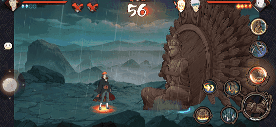 释放一技能五遁之术:火遁可以全图追踪敌人,并附加灼烧效果,可用于针对绕至大佛身后的忍者。