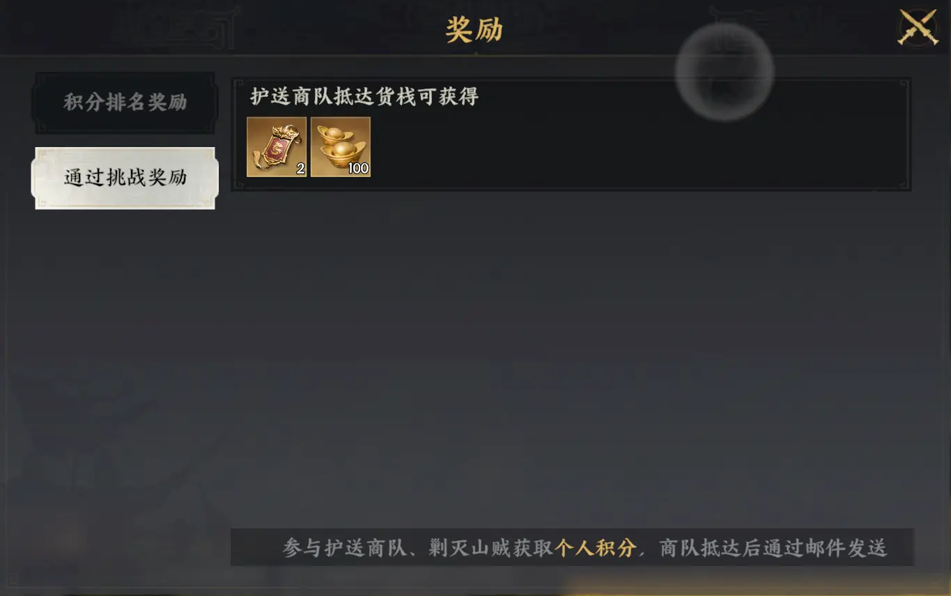 ●途中商队将遭遇山贼袭击,每次被攻击都将损失物资,物资减少会影响最终的奖励。