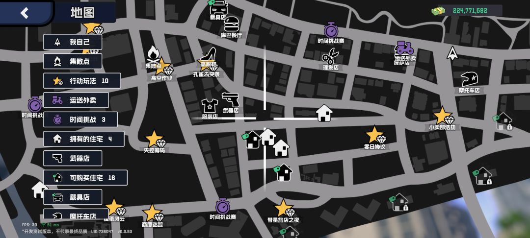 左侧一横栏,点击可以传送(时间挑战,运送外卖不可)
