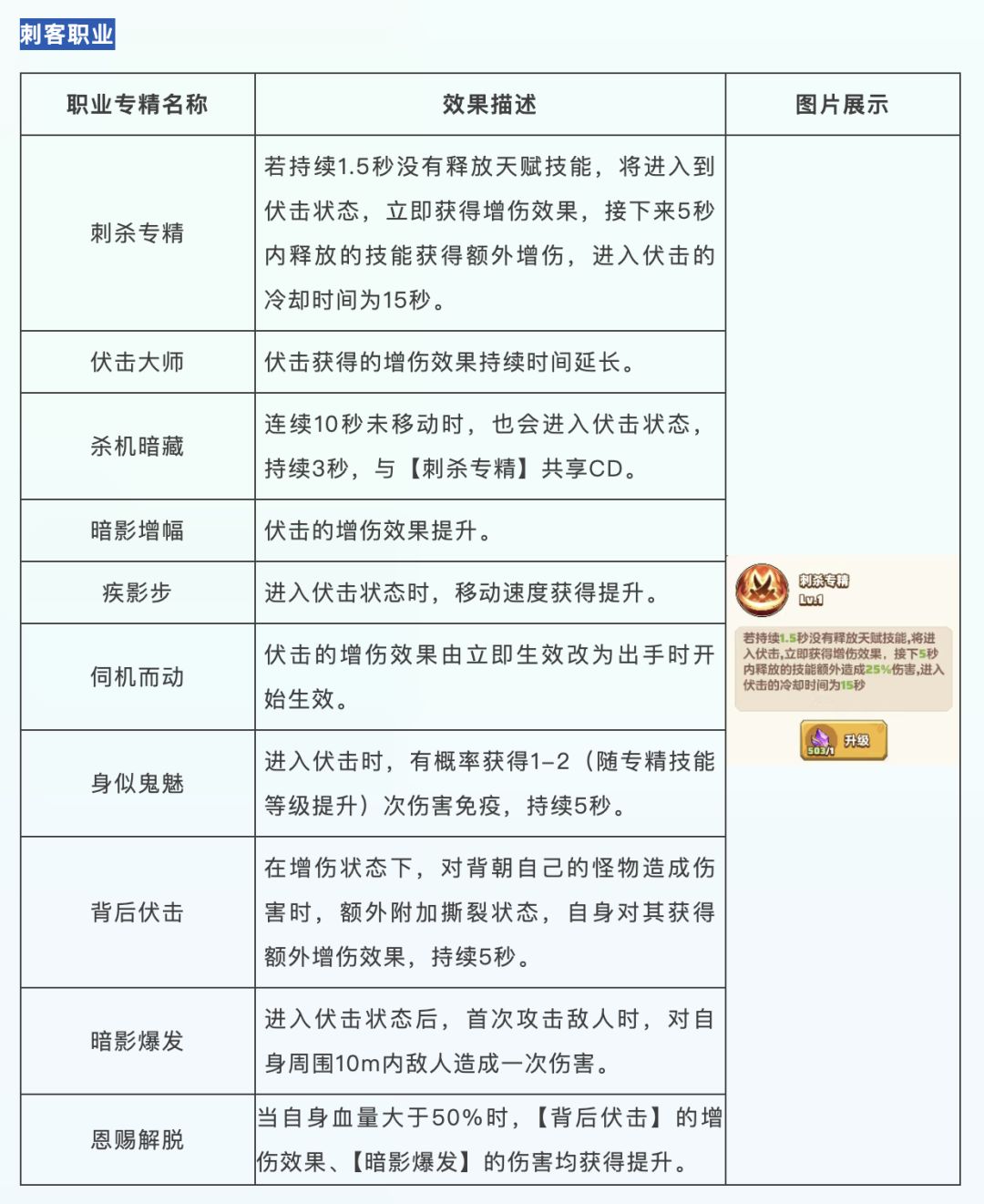 刺客专精效果(部分)