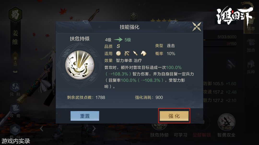 在学习二技能时要注意,S级与A级的武技绝大多数仅有一次学习机会,且学习次数不可提升。若想更换武技携带者,则需要原本的携带者先将武技遗忘,再让别的武将进行学习。武将的一技能升至10级,再消耗2张同星级武将卡对其觉醒,便能学习该武将的第三武技。