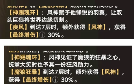 首先是风笑天的神赐魂环,这个魂环的主要作用是在长图中极为夸张的提升风笑天的输出,30%这个最终增伤的比例都可以傲视当前版本的所有主C神赐魂环了,但大家也需要注意到其中的触发前提是“疾风”或“魔狼狂暴”状态需要叠到7层才能爆发,而这两个状态分别都是需要3分多的暖机时间才能叠到7层的,所以实测数据如下: