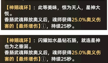 接着则是奥斯卡的神赐魂环,这个神赐魂环主要可以为奥斯卡带来极为不俗的“奥义增伤”,不管是1还是4奥义,25%的奥义比例都颇为夸张......这里就直接给大家上实测数据吧:
