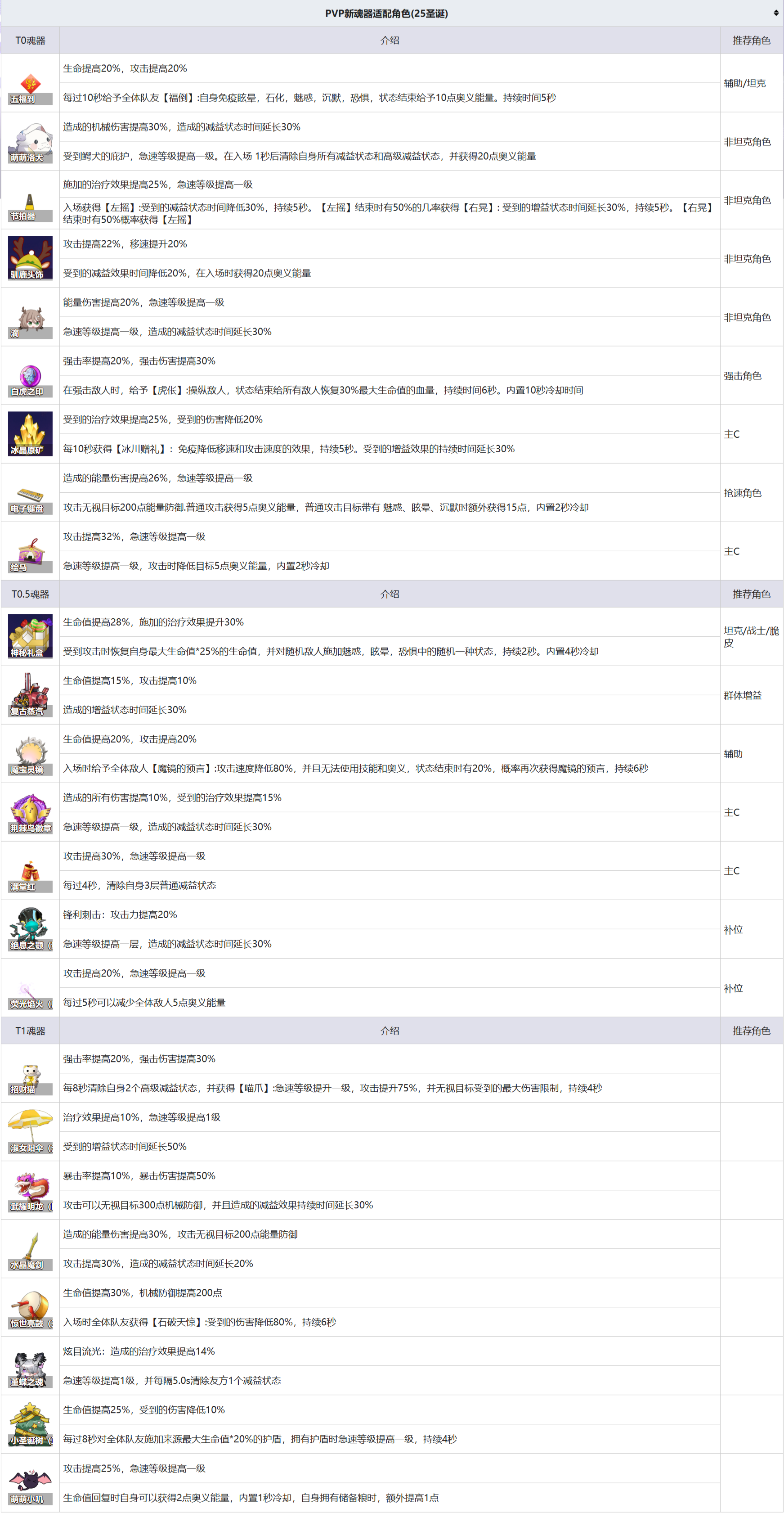 最新版本版本角色迭代,魂器搭配更新25年10月新版本魂器推荐更改为适配,加入彩色芯片推荐以及存在补位的推荐25年9月旧版本24年10月8日加入新魂器9月28日减少角色为T1以上角色,T...