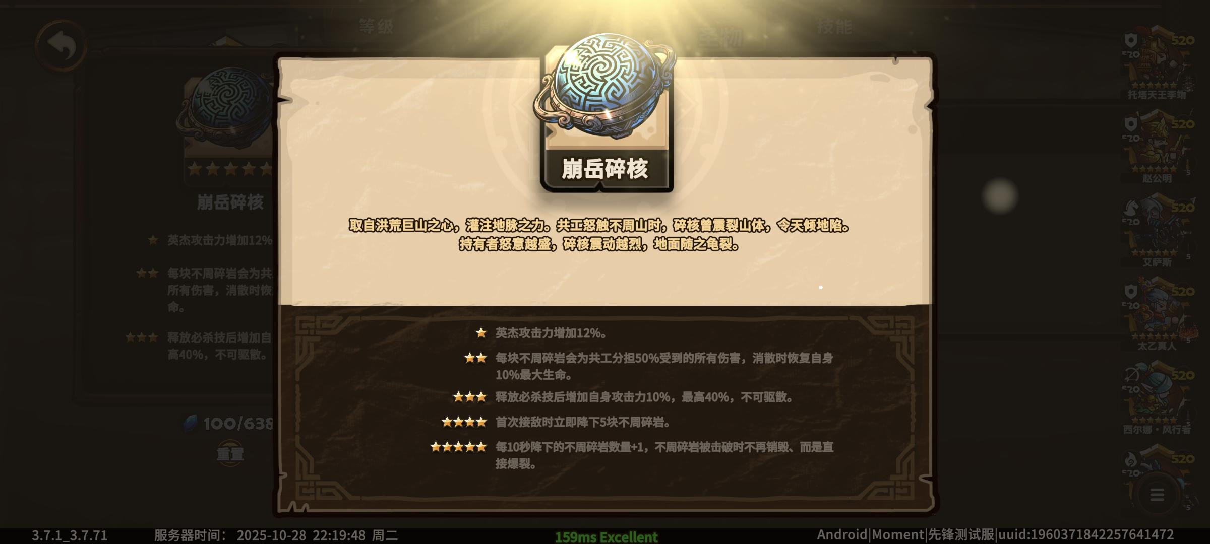 以及200%范围群伤单看技能面板和甘道夫白袍一样,能限制对面远程一半的输出和群体减速,石头不会空全图随机但会索敌,残局能全砸一个人身上,不会乱砸,且石头分摊本体受到的伤害和回血也不好切,如不5圣石头没到10秒不会爆,5圣一没就爆50%魔攻,阵亡场上石头全部引爆,相当全面,技能和圣物之间的组合可称绝配,需注意如果要配合薇薇安和赫敏,4圣开场5个石头不生效。