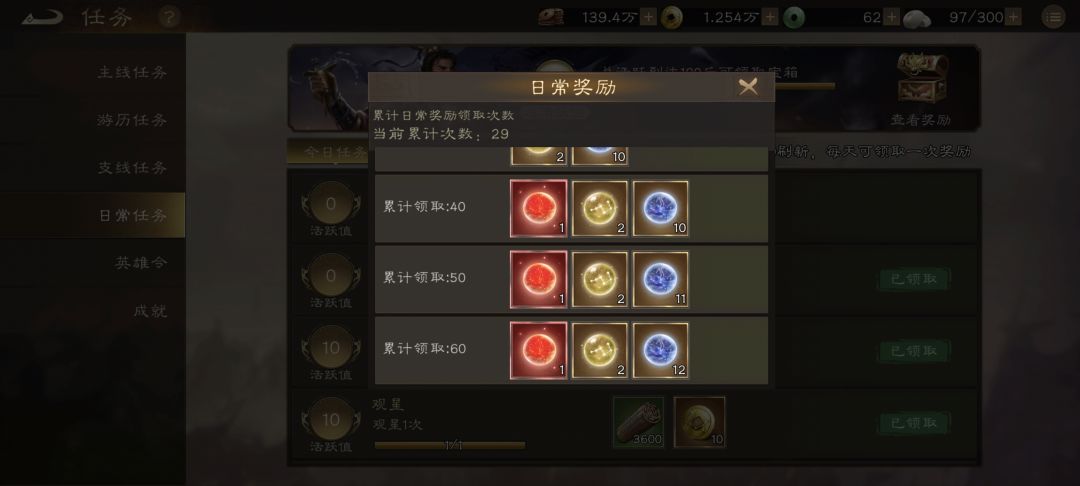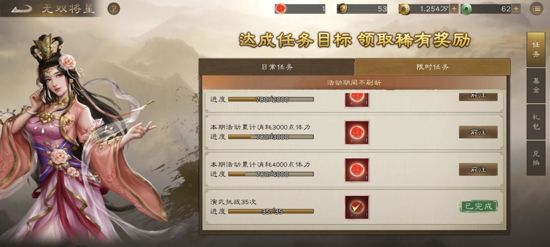 无双武将是目前游戏中最强力的一批武将了,无双将星活动每28天一次,持续7天,在活动中我们可以任意选择已有无双武将其中一位来进行抽取,保底40抽百分百不歪,且保底数可以继承至下次,下面我们来统计下零氪在两次活动间隔期一共可以白嫖多少无双抽呢?