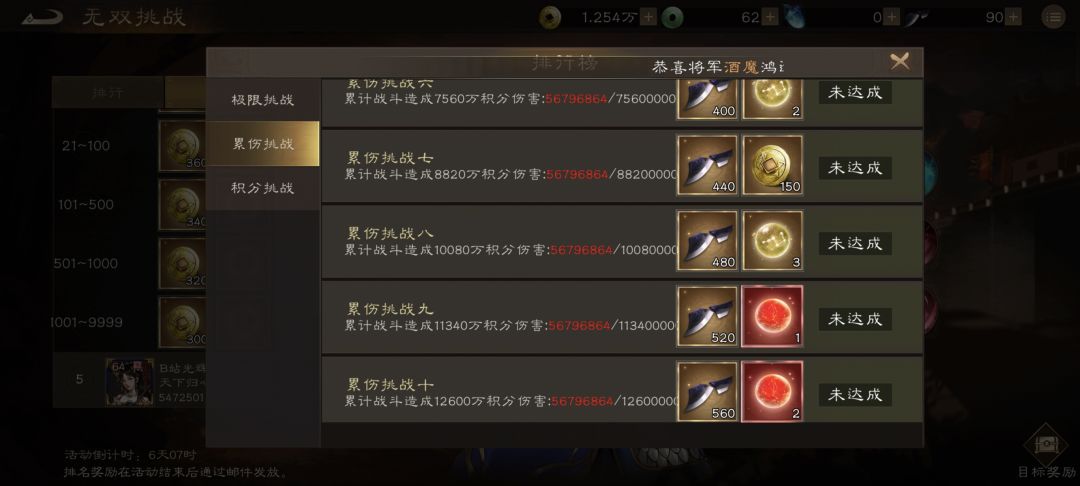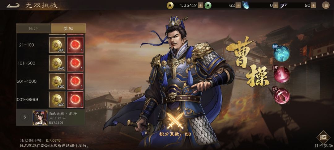 无双挑战活动,无论排名多少都可以得一抽,前20会更多