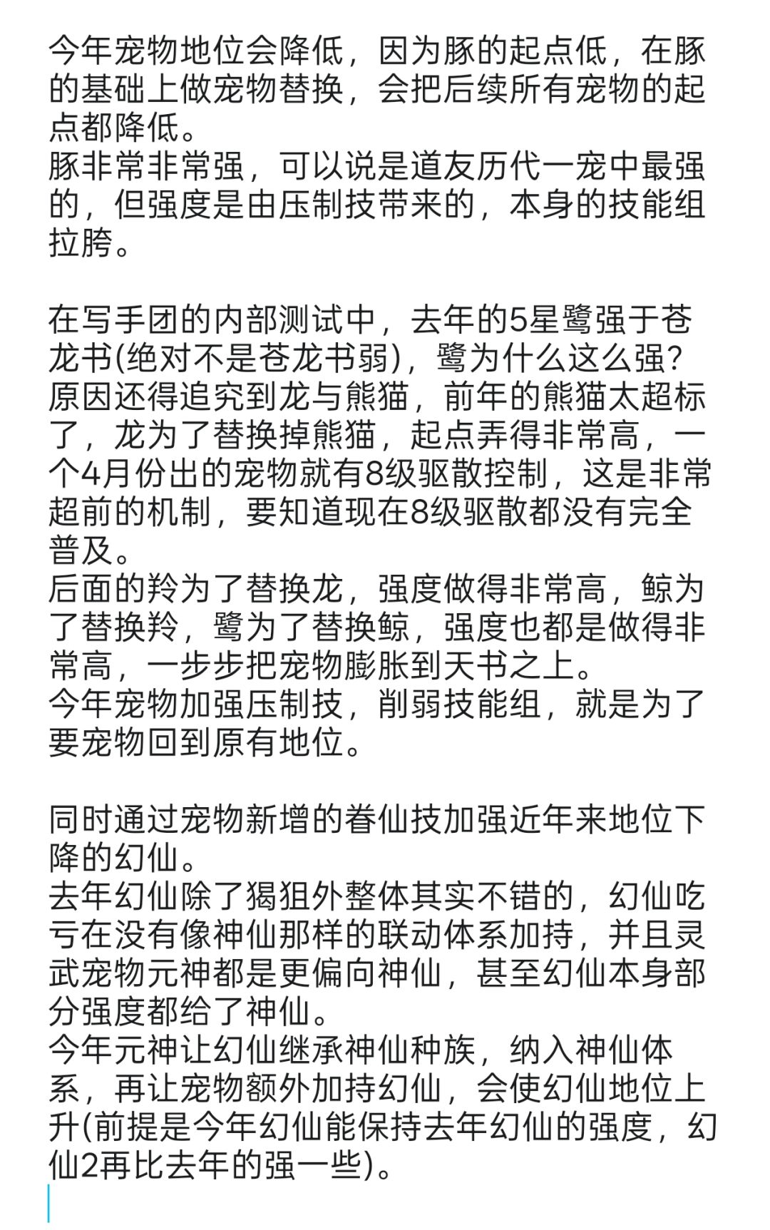 今年宠物压制技强,技能组弱,如果不考虑压制技,3456宠只能对标往年的1234宠,现在阵容上就剩一两个金霄宠物,压制技没什么用了,技能组弱的劣势就体现出来了。