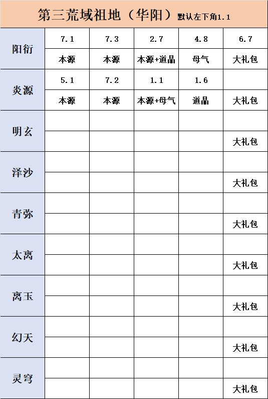 注意:每个祖地都是三个本源+道晶+母气+大礼包的,有些祖地没有母气或者道晶就是和其中一个本源在一起,统计的时候有可能会忽略掉了,所以不要奇怪