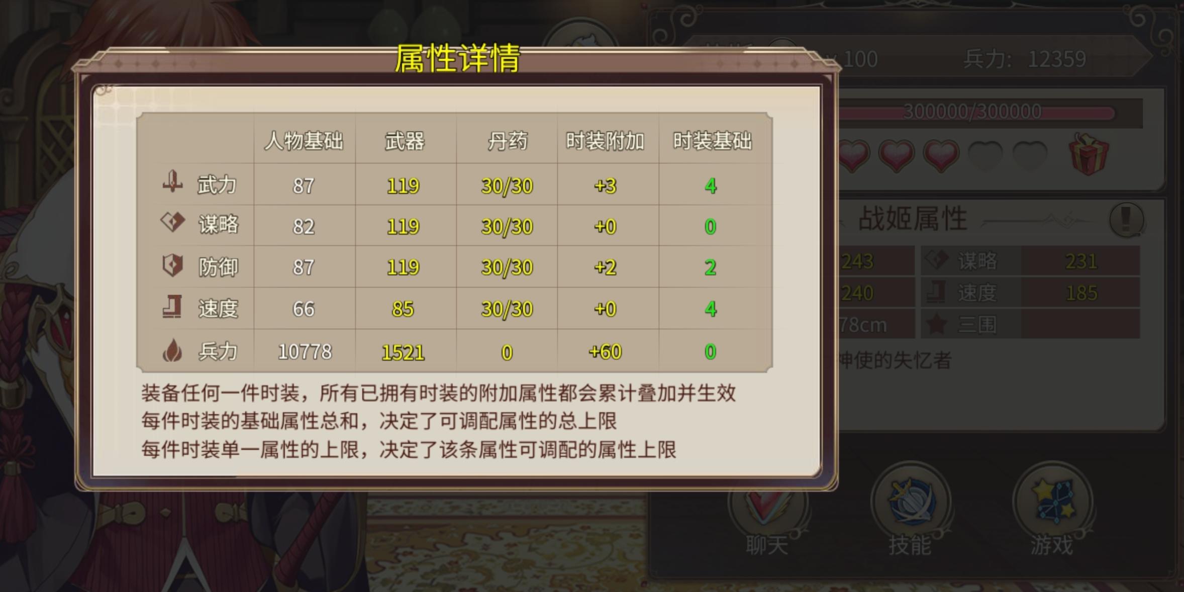 衣服方面可支配10点,选择拉满武力速度,剩下给防御
