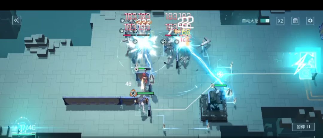 其次效果的量子传导,从效果描述来看,是固定时间释放一次电磁打击,电磁打击可对当前目标造成自身攻击力152%的电磁伤害,另外队友造成击退时可以连携触发,因此非常适合对群,同时对单效果也比较优秀。下面是实际触发效果:
