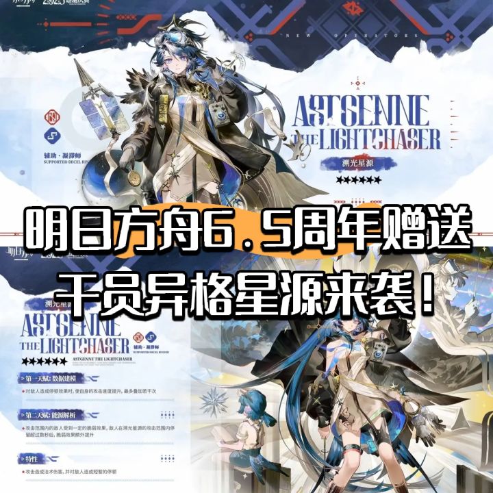 《明日方舟》2025年6.5周年感谢庆典正式开启,新活动干员溯光星源作为免费赠送角色登场,玩家通过完成限时活动任务即可解锁这名辅助干员