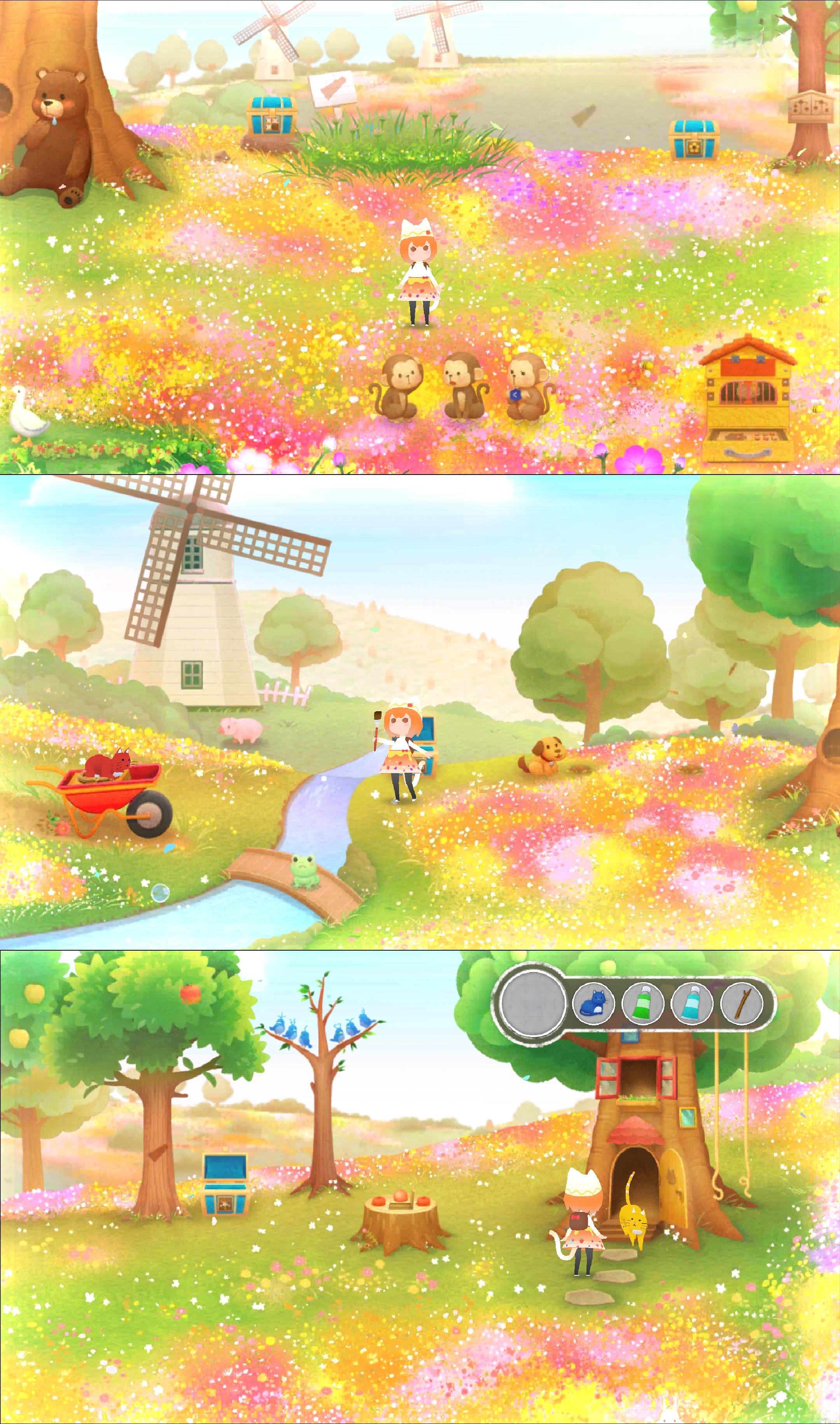 游戏场景比第一部丰富了很多很多,公园、家里、草地、车站、街头、冰天雪地、城堡、回忆之境、七彩森林,每个场景都有着独特的互动方式,会带给玩家不一样的惊喜。游戏的音乐很温馨,音效也很有趣,极具探索性。游戏还可以装饰房间、换装,别有一番趣味,整体是一个成熟的解谜游戏。