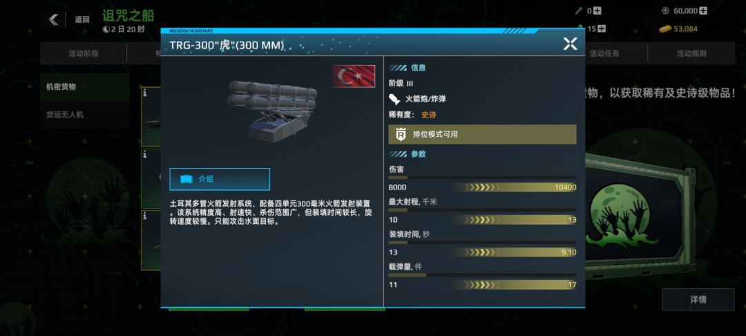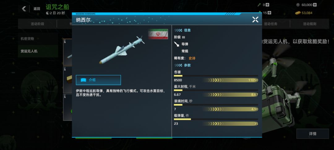 这导弹秒伤4344,偏弱,综合性强,可以作为潜艇导弹用,相比于我的p~400(机密货物抽奖导弹概率0.45%),还是差了不止一点