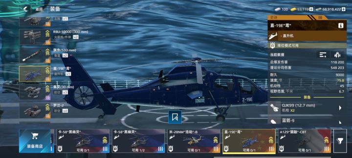 直-19的速度较快,换算后约为420千米/小时,这使其在点灯方面具有优势,能够快速抵达指定位置进行探测。同时,直-19E的雷达距离为11.6千米,点灯范围也相当出色,探测能力较强。但火力弱,只适合点灯,建议保留。