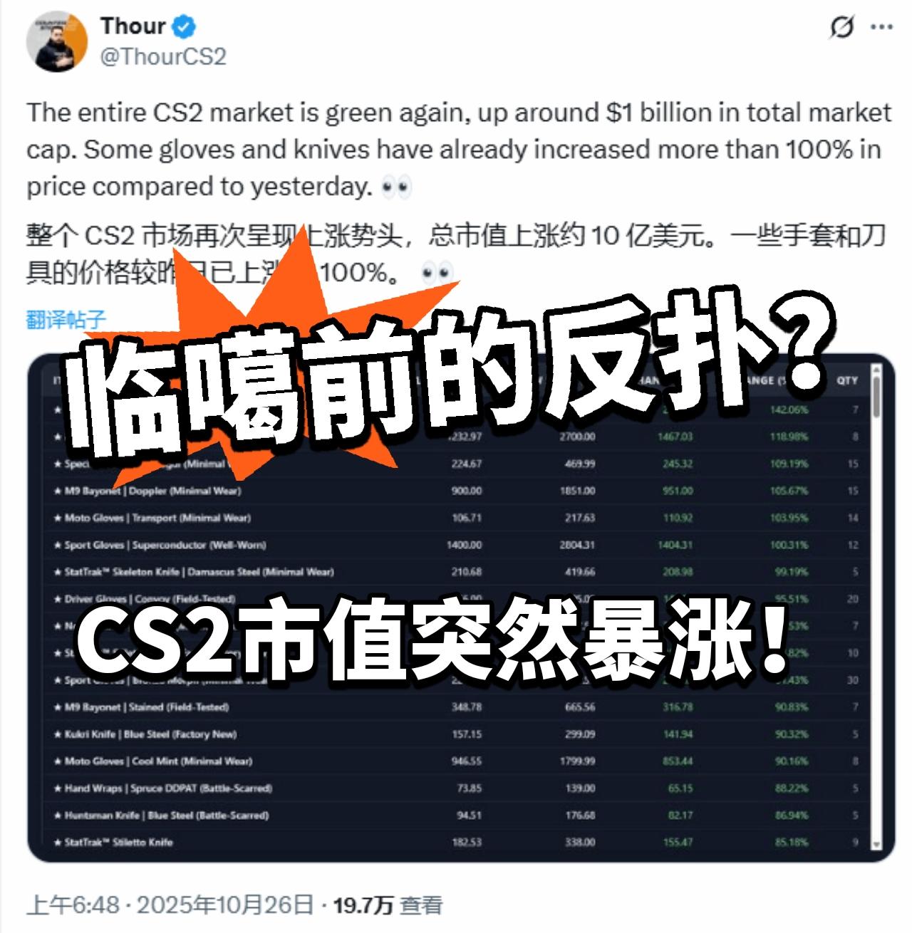 真就开始回光返照了是吧? 近日,随着CS2饰品价格暴跌,就在今天,突然迎来暴涨!