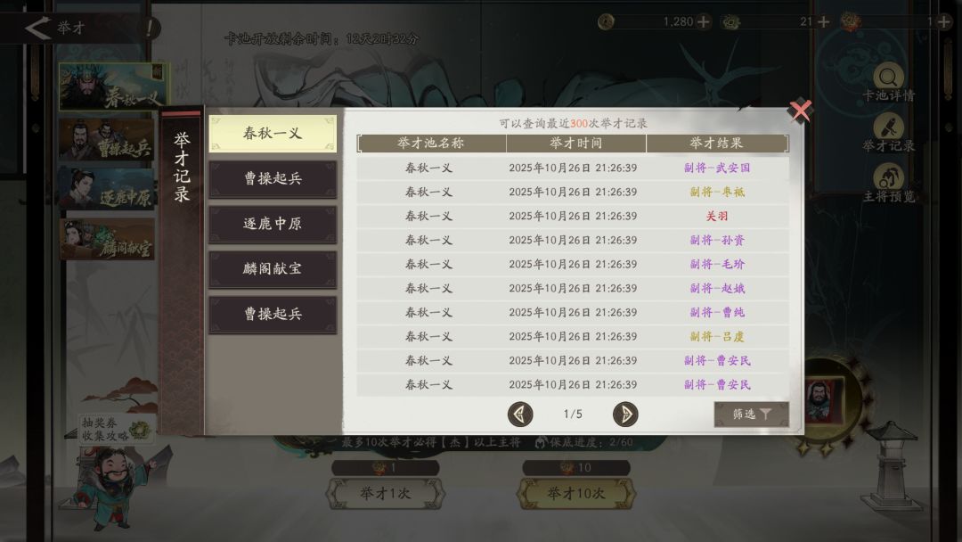 【抽将记录】关羽也出了,第48抽出的