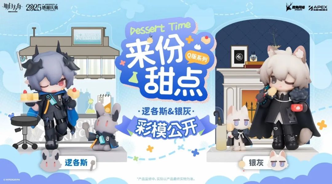 主线动画设定集。星愿系列周边。和一番赏的合作来份甜点。新约能天使,维什戴尔,庆典之夜手办。上好佳联动。123罗德岛漫画。猩红血钻的漫画。W和送葬人、lgs和银灰的粘土人,异格拉普和德克萨斯手办。明日方舟X轻松熊联动。