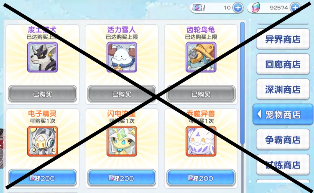 ①先买电子再买其他橙宠,三个都满星后可以根据紫宠情况适当买紫宠碎片加速进度