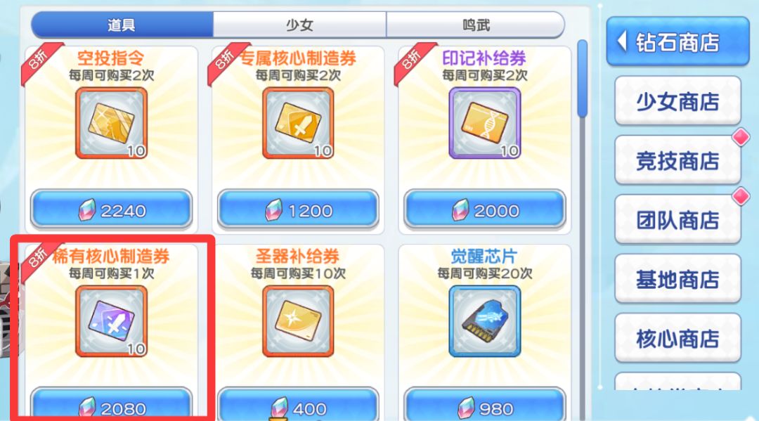 ①稀有核心制造券必买,五折的万能溶剂看自己需求和钻石富不富裕;