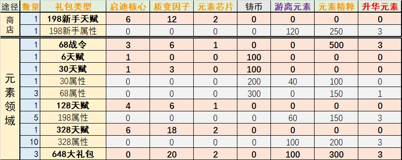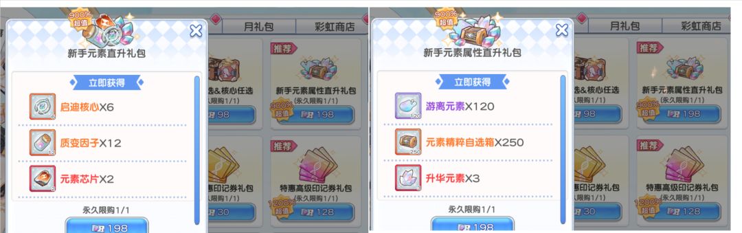④这里需要注意新手特惠一栏中出了“元素直升”和“元素属性直升”礼包,性价比比元素领域中同档位高不少,根据氪金档位购买。
